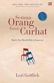 Buku Semua Orang Butuh Curhat karya Lori Gottlieb ini membagikan kisah pribadi penulis saat melalui masa tersesat dan kehilangan arah. Dengan gaya bahasa yang ringan seperti berbagi cerita antar teman, penulis membeberkan kebenaran dan ilusi yang hadir saat kita berada di berbagai situasi genting, saat dihadapkan pilihan yang rumit.